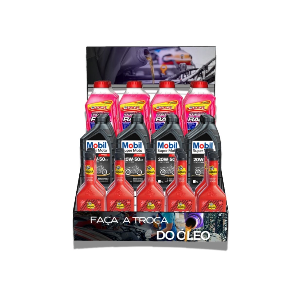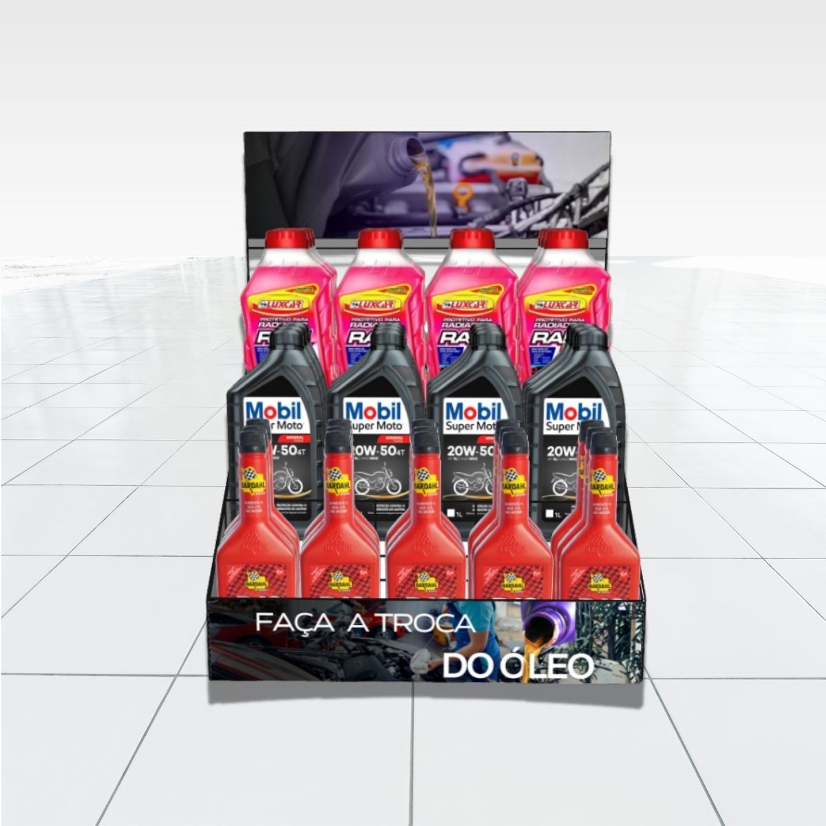 Serve para expor Óleos, Aditivos, Graxas, Tiner, Potes Cosméticos e outros